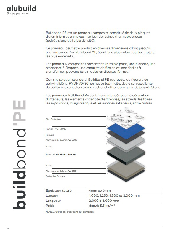 Panneaux composites en aluminium pour l'architecture, le bâtiment, la signalétique, l'identité visuelle et les transports